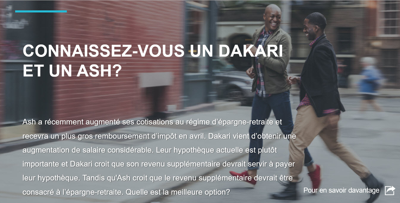 L’Équitable est fière de vous offrir des annonces publicitaires personnalisées, conçues par des professionnels, afin de promouvoir les avantages d’un RER de l’Équitable. |